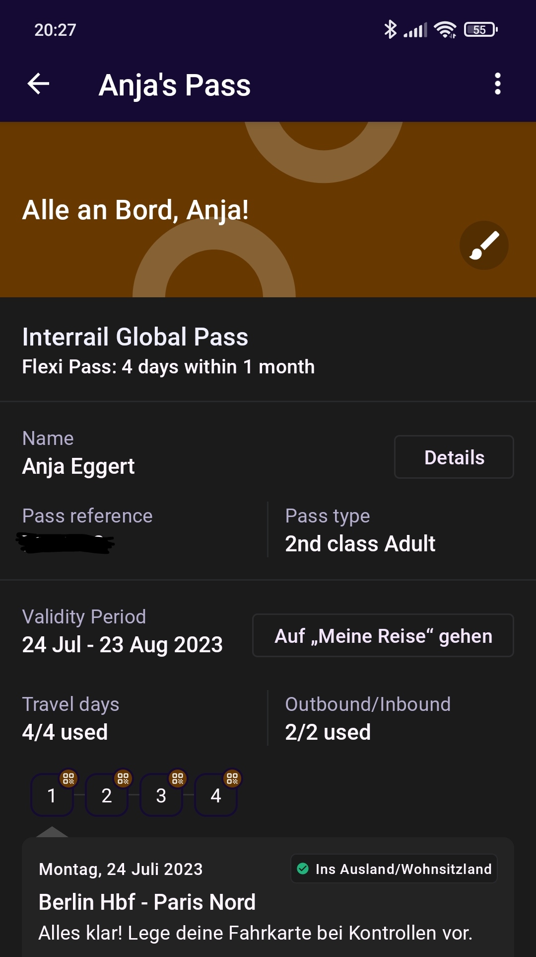 1. Reisetag aktiviert.