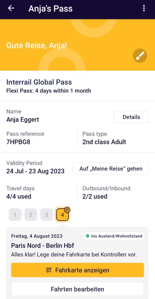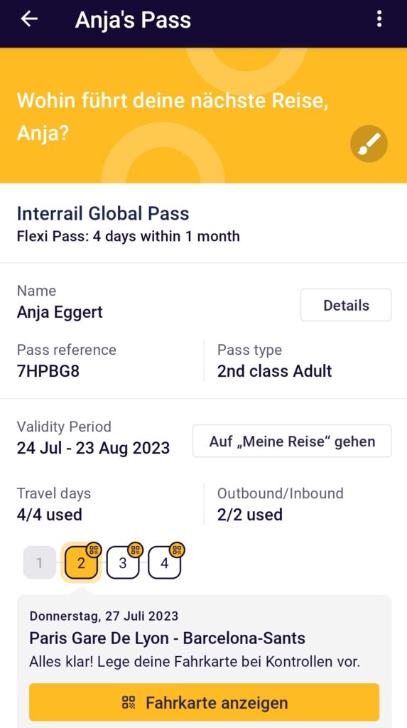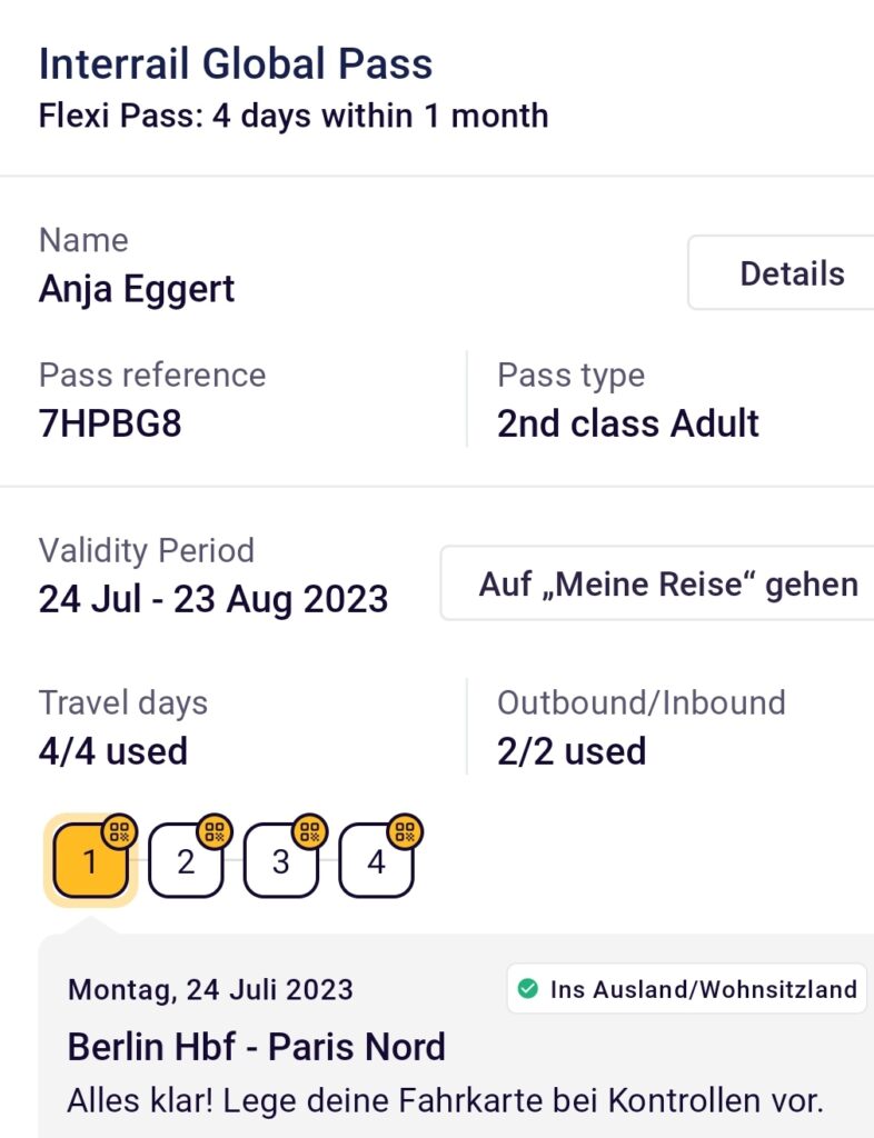 Das Interrail Ticket hat der Zugbegleiter kommentarlos eingescannt. Das war fast etwas enttäuschend unspektakulär.