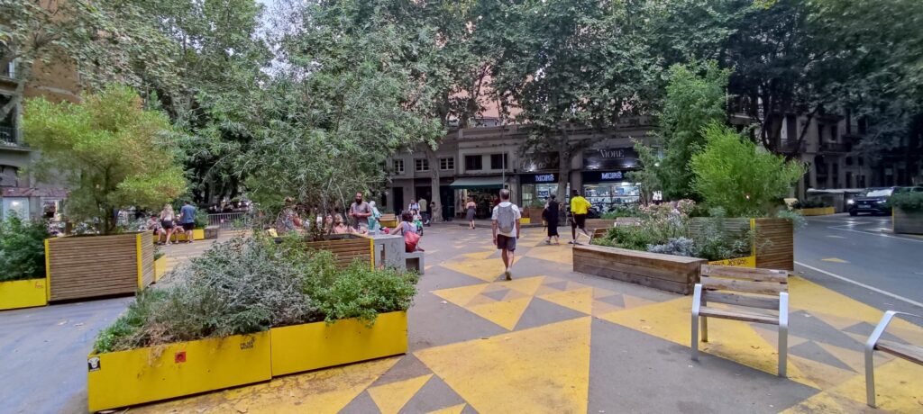 In Barcelona gibt es Superblocks. 2016 gewann Ada Colau die Wahl zur Bürgermeisterin und führte eine links-grüne Stadtregierung an. Sie war mit dem Versprechen angetreten, den Verkehr in der Stadt zu reduzieren: „Omplim de vida els carrers!“ auf Deutsch: „Lasst uns die Straßen mit Leben füllen!“. Mehr Details hier: https://ajuntament.barcelona.cat/superilles/es/.