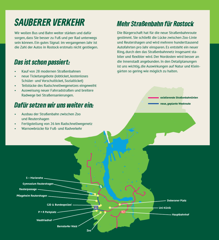 Als Wissenschaftlerin stehe ich persönlich für evidenzbasierte Politik und ich werde mich für einen vielfältigen Wissenschaftsstandort Rostock stark machen – mit einer engen Vernetzung mit der Stadtgesellschaft und der grünen Wirtschaft.